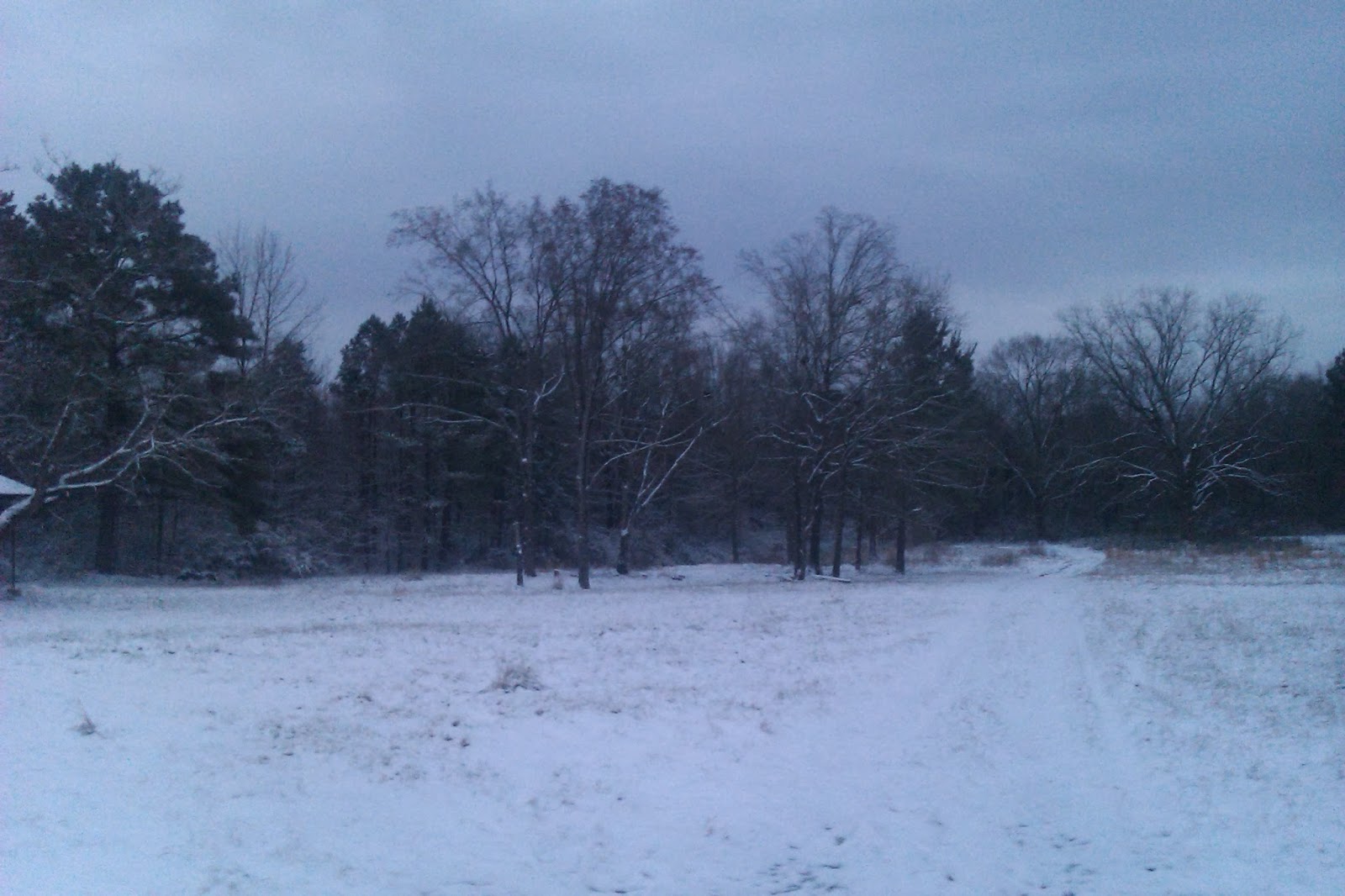 Well it's susposed to rain for the next 3 days the weatherman says... so thought I'd go for a walk again out in the back 40 and check on the hog trap.... the lake is very still this morning... lite breeze... peaceful!